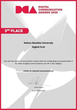 Nelson Mandela University won a Bronze Digital Communication Award for outstanding accomplishments in the field of digital communications and PR in the category COVID-19: Internal Communications.