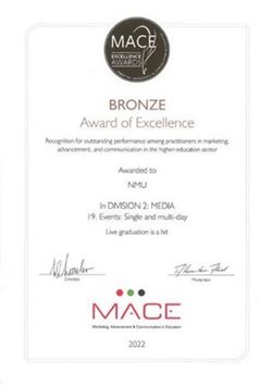 Nelson Mandela University won a MACE Bronze Award in the category Events for its "Live graduation is a hit" campaign.